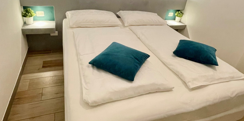 50 m² Wohnung mit einem Schlafzimmer, Bad, Wohnbereich und Küche. Westausrichtung. Maximalbelegung 4 Erwachsene 1 klein Kind